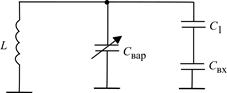 Рис. 2.31. Частотозадающий контур ГУН Диапазон изменения емкости варикапа лежит в пределах 0,1…0,16 пФ. Диапазон перестройки частоты ГУНа в устройствах подвижной связи и беспроводного доступа обычно не превышает 5…7%.