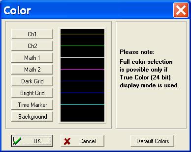 Рисунок 1.13 - Окно выбора цвета объектов экрана осциллографа