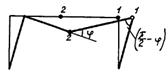 Рис. 3. Схема механизма пластического разрушения рамы С учетом указанных последних выражений ограничения-неравенства (14) настоящего приложения для каждого из шести возможных механизмов пластического разрушения будут такими: 12,936 hPp ³ 72,76; (14,68 + 12,936 h) Pp ³ 80,844; (29,36 + 12,936 h) Pp ³ 90,95; (44,04 + 12,936 h) Pp ³ 103,943; (58,72 + 12,936 h) Pp ³ 121,267; (73,4 + 12,936 h) Pp ³ 145,52. Для наглядности определим две точки на кривой предельного равновесия “в большом” Рp = Pp (h),. Первую точку найдем, приняв Pp = Pd = 1. Минимальное значение параметра h, удовлетворяющее полученной системе линейных ограничений-неравенств, будет minh = 4,631. При этом четвертое из ограничений переходит в строгое равенство, что соответствует образованию второго пластического шарнира в расчетном поперечном сечении с координатой Как и следовало ожидать, результаты расчета рамы статическим и кинематическим методами совпали. ж) Определение параметров Рs и b кривой предельного равновесия “в большом” Подставляя координаты второй точки h = 1 и Рр = 1,686 в формулу (12) настоящего приложения, найдем Рs = 1,686. Подставляя координаты первой точки h = 4,631 и Рр = 1 в это же выражение, получим: