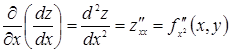 Аналогічно визначаються частинні похідні 3-го, 4-го і т. д. порядків. Так Частинна похідна другого або більш високого порядку, узята по різних змінних, називається змішаною частинною похідною. Такими є, наприклад Приклад 2. Знайти частинні похідні другого порядку функції