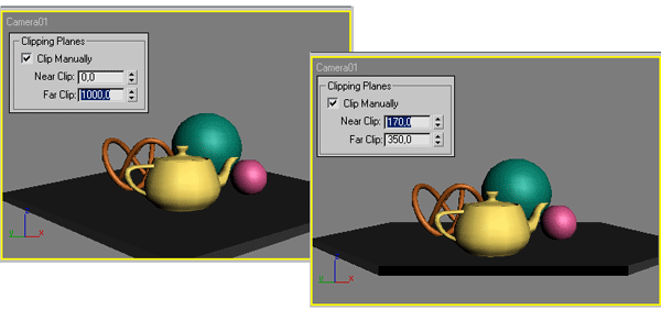Рис. 11. Возможный вид сцены: исходный (слева) и с ограничивающими плоскостями
