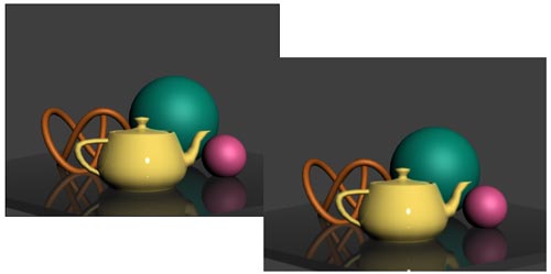 Рис. 8. Вид сцены с исходным (слева) и увеличенным фокусным расстоянием