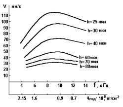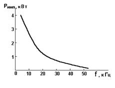 Рис.5. Зависимость мощности лазерного излучения от частоты следования импульсов.