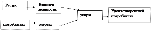 Эта модель характерна для дешевых услуг. Ресурсы используются полностью, отсюда более высокая эффективность работы. Но при этом покупателям приходится "стоять" в очереди.