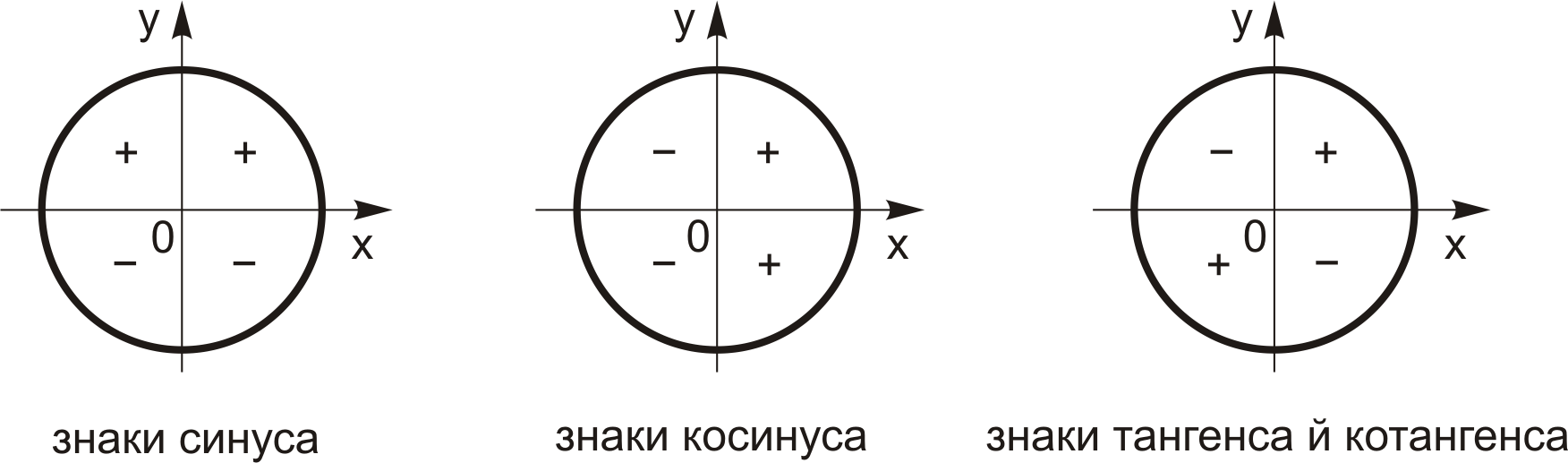 Згідно з означенням тригонометричних функцій мають місце такі формули: