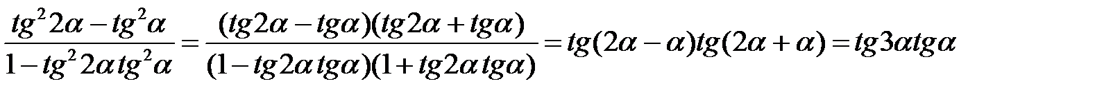 У перетвореннях тригонометричних виразів застосовувалися формули подвійного аргументу для Приклад 2.13. Довести тотожність Розв’язання. Розкладемо на множники ліву частину рівності та застосуємо формули тангенса суми і різниці двох аргументів. Маємо