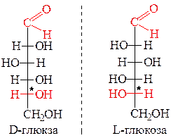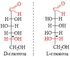 Монозы, которые имеют противоположную конфигурацию всех ассиметрических атовов углерода и относятся друг к другу как предмет к своему зеркальному изображению, называют энантиомерами. Например, D-глюкоза и L-глюкоза.