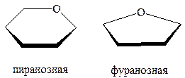 Циклическая форма моноз образуется при внутримолекулярном взаимодействии карбонильной группы и гидроксильной, связанной с пятым (С-5) или четвертым (С-4) атомами углерода. Данная реакция приводит к образованию простой эфирной связи и появлению новой гидроксильной группы полуацетальной, или гликозидной.