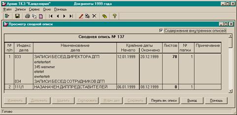 Рис. 4.27. Окно просмотра и редактирования сводной описи