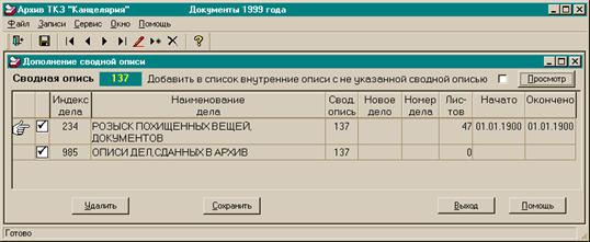 Рис. 4.30. Окно дополнения сводной описи