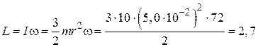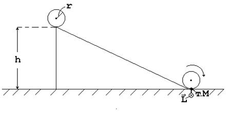 Момент импульса L при переходе цилиндра на горизонтальную плоскость направлен вдоль мгновенной оси вращения, как показано на рисунке. Модуль момента импульса