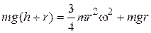 Потенциальная энергия цилиндра определяется положением центра масс цилиндра над горизонтальной плоскостью. Поэтому: Как известно, качение цилиндра по плоской поверхности можно рассматривать как поворот с угловой скоростью ω вокруг мгновенной оси вращения, проходящей по линии соприкосновения цилиндрической поверхности и плоскости. На рисунке мгновенная ось вращения проходит через точку М перпендикулярно плоскости рисунка. Следовательно, кинетическая энергия определяется выражением