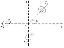 На горизонтальной плоскости введем систему координат XOY, как показано на рис. 1. Соударение шаров происходит в начале системы координат. Соударение абсолютно неупругое, поэтому шары “слипаются” и движутся вместе со скоростью