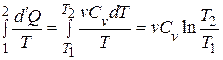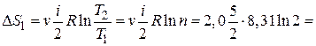 = Ответ: 1) ЗАДАЧИ ДЛЯ САМОСТОЯТЕЛЬНОГО РЕШЕНИЯ 2.33. Какое количество тепла Q нужно сообщить 75 г водяных паров, чтобы нагреть их от 100 С до 250 °С при постоянном давлении? Определите изменение энтропии водяного пара. (Q = 20,8 кДж; D S = 47,5 Дж/К) 2.34. Определить изменение D S энтропии при изотермическом расширении кислорода массой m = 10 г от объема V 1 = 25 л до объема V 2 = 100 л. (Относительная молекулярная масса кислорода 32). (3,6 Дж/К) 2.35. Найти изменение D S энтропии при нагревании воды массой m = 100 г от температуры t 1 = 0 ° C до температуры t 2 = 100 ° C и последующим превращении воды в пар той же температуры. Удельная теплоемкость воды C = 4,18 кДж/(кг×К), удельная теплота парообразования воды 2,25×103 кДж/кг. (737Дж/К) 2.36. Найти изменение D S энтропии при превращении массы m = 200 г льда, находившегося при температуре t 1 = -10,7 ° C в воду при t 2 = 0 ° C. Теплоемкость льда считать не зависящей от температуры. С = 2,1×103 Дж/(кг×К). Температуру плавления принять равной 273 К.Удельная теплота плавления льда l = 333×103 Дж/кг. (D S = m[C × ln (T 2/ T 1)+l/ T 2 ] = 261 Дж/К) 2.37. Один киломоль газа изобарически нагревается от 20 до 600 °С, при этом газ поглощает 1,20×107 Дж тепла. Найти число степеней свободы молекулы газа i; построить зависимость энтропии S как функцию от температуры Т газа. (i = 3)