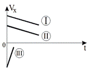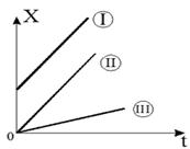 2. На рисунке представлен график зависимости координат от времени для трех тел. В каком из нижеприведенных соотношений между собой находятся скорости этих тел?