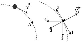 3. Тело, движущееся по траектории, указанной на рисунке, в точке А разрывается на два осколка. Определить приблизительно направление второго осколка, если первый осколок движется так, как показано на рисунке.