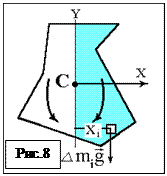, или , где - вращательный момент силы тяжести относительно горизонтальной оси, проходящей через центр тяжести. Центр тяжести может не совпадать с центром масс лишь в неоднородном гравитационном поле.