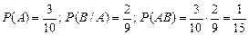 Под условной вероятностью Установление независимости событий, либо определение условных вероятностей, часто делается из соображений по существу исследуемого процесса. Рассмотрим пример. В механизм входят две одинаковые шестерни. Технические условия нарушаются, если они обе окажутся с плюсовыми отклонениями по толщине зуба. У сборщика имеется 10 шестерен, из которых 3 «+» и 7 «-». Определим вероятность нарушения технических условий при сборке. Пусть событие А ~ {первая шестерня «+»}, событие В ~ {вторая шестерня «-»}. По правилу умножения находим Если же шестерни последовательно устанавливаются на двух рабочих местах и у двух сборщиков одинаковые партии шестерен, то А и В можно считать независимыми. В этом случае