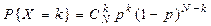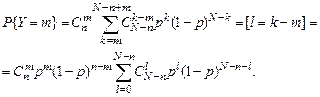 2. Пусть совокупность объемом N образуется по схеме Бернулли с вероятностью успеха p. Для наглядности представим, что корзина последовательно заполняется N шарами, которые независимо друг от друга могут быть черными с вероятностью p и белыми с вероятностью 1- р. Ряд распределения числа черных шаров, будет иметь вид