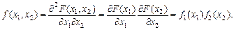 Функция распределения (1.2.12) обладает свойствами, аналогичными свойствам функции распределения одной СВ. Однако знание функций распределения F 1(x 1) и F 2(x 2) недостаточно для описания совместного распределения X 1 и Х 2, так как между ними возможно наличие стохастической зависимости — связи. При условии независимости X 1 и Х 2, что эквивалентно независимости событий A 1@{ X 1< х 1} и А 2@{ Х 2< х 2}, функция совместного распределения факторизуется и для ее определения достаточно знать функции распределения компонент F (x 1, x 2)= F (x 1) F (x 2). (1.2.13) Точно так же факторизуется и плотность совместного распределения:
