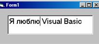 Одной из удобных возможностей, которую можно часто встретить практически в любом Windows–приложении, является выделение текста. Для этого поместите в обработчик события, возникающего при получении фокуса текстовым полем. Text1.SelStart=0 Text1.SelLength=Len(Text1.Text) В приведенном фрагменте программы использованы два основных свойства – SelStart и SelLength, которые можно изменить только во время выполнения программы. Свойство SelStart задает начальную позицию текста, находящегося в свойстве Text. Свойство SelLength – его длину. Пример. Private Sub Txt1_GotFocus() Если в программе необходимо Txt1.SelStart = 2 удалить часть текста, то Txt1.SelLength = 6 используйте: Txt1.SelText = "люблю" Txt1.SelText = "" End Sub