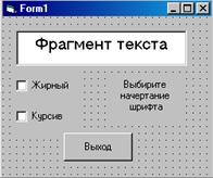 Private Sub Chk2_Click() Рис. 5.2.2. Форма к примеру 4 Txt2.FontItalic = Chk2.Value End Sub