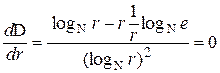 N= n= D= Будем считать, что основание системы счисления может принимать любые значения, а не только целочисленные, изменяясь непрерывно, а не дискретно. Соответственно количество цифроразрядов может быть также величиной непрерывной, связанной с основанием системы счисления логарифмической зависимостью: D(r)= Это позволит свести задачу нахождения D(b)min к исследованию функции на экстремум: