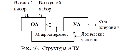 Общая структура устройства, выполняющего арифметические операции, например АЛУ, имеет структуру, представленную на рис. 46.