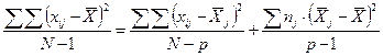 Для получения дисперсии необходимо поделить каждую из этих величин на соответствующую величину степеней свободы. Пусть Тогда