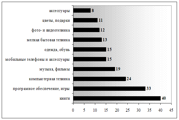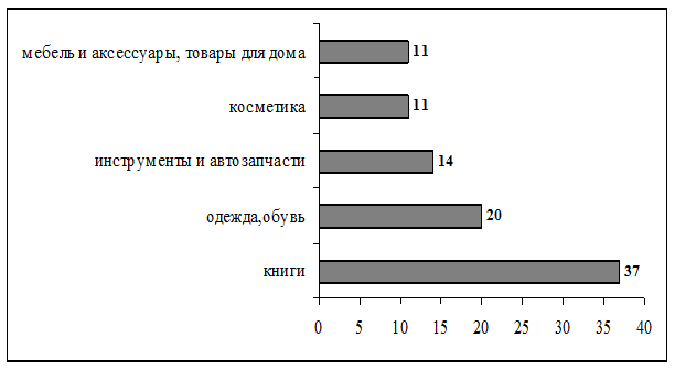 Рис. 37 Структура товаров, реализуемых в России через интернет-маазины
