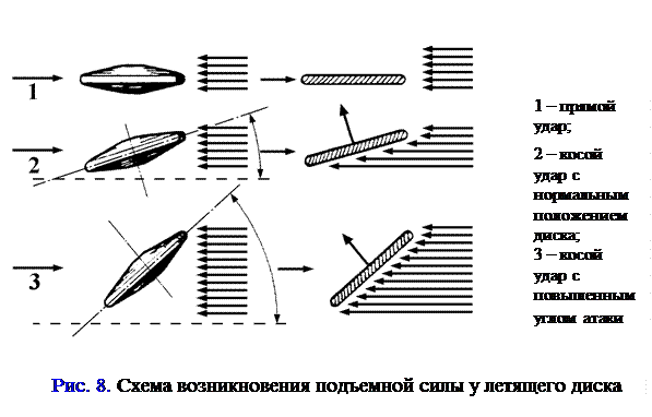 Углом атаки называют угол, заключенный между плоскостью снаряда и направлением набегающего потока воздуха. Если поток воздуха набегает на нижнюю поверхность тела, то угол атаки называют положительным, а если на верхнюю поверхность – отрицательным. При метании копья оптимальным считается положительный угол атаки, находящийся в пределах 2-10°. При метании диска положительный угол атаки имеет место, как правило, только при метании данного снаряда по ветру. В других случаях более предпочтительным считается бросок диска с отрицательным углом атаки. Для лучшего использования аэродинамических свойств диска и копья, т.е. снарядов, подвергающихся в полете заметному влиянию подъемной силы воздушной среды (например, встречного ветра), следует не только уметь изменять угол атаки данных снарядов при броске, но и варьировать, в зависимости от силы и направления ветра, углом их вылета. При метании против ветра угол вылета копья и диска надо уменьшать по мере увеличения скорости ветра, при попутном ветре – увеличивать. Так, угол вылета диска при попутном ветре надо повышать до 44°. При встречном ветре диск целесообразнее выбрасывать под углом 27°. При метании «женского» диска встречный ветер требует большего снижения угла вылета (до 23°), чем при метании «мужского». Если рассматривать, как сила воздействия на снаряд влияет на угол его вылета, то хотелось бы отметить, что во всех метаниях, кроме толкания ядра, данный показатель не влияет на угол вылета. При толкании же ядра, чем меньше сила воздействия на снаряд, тем больше угол вылета, и наоборот.