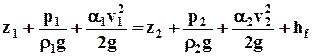 Принимая такие обозначения, запишем уравнение Бернулли в виде