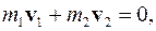 Вследствие закона сохранения полного импульса системы импульс после соударения равен импульсу до соударения (p = p0), а поскольку начальный импульс системы был равен нулю, следовательно,