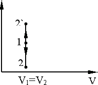 Рис. 9.5. Рис. 9.6. Изобарный процесс, P = const, изображается на диаграмме P,V прямой, параллельной оси абсцисс, при нагревании направленной от точки 1 к точке 2, а при охлаждении – к точке Изотермический процесс, T = const, изображается в координатах P,V гиперболической кривой 1 – 2 (рис. 9.7).