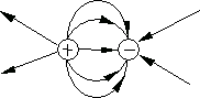 Рис. 11.8. Рис. 11.9. Диаграммы силовых линий: для одиночного положительного заряда представлены на рис. 11.6, для одиночного отрицательного заряда – на рис. 11.7, для двух зарядов противоположного знака – на рис. 11.8 и для двух зарядов одного знака – на рис. 11.9.