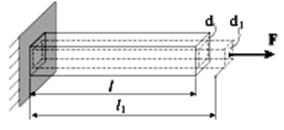 Отметим также известный факт, что при растяжении резинового шнура его поперечный размер d уменьшается до величины d1. Такое поперечное сжатие характеризуется параметром