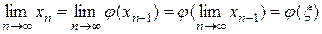 Пусть у этой последовательности существует предел Таким образом, предел является корнем уравнения На рисунке дана геометрическая интерпретация метода итераций в зависимости от знака производной функции φ(х).