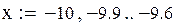 на промежутке (-10,-9,6) с четырьмя знаками после запятой.