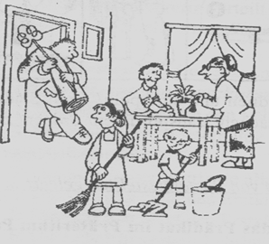 die Blumen gießen den Fussboden waschen den Staub abwischen den Fussboden fegen den Teppich klopfen