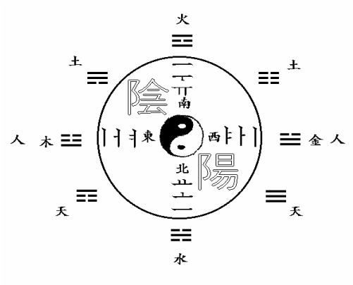 “Великий Предел“, взаимодействуя с силами “Тьмы и Света“ дает начало "Трем первоприродам" и "Пяти стихиям", которые могут последовательно "порождать“ и "преодолевать" друг друга. Отсюда и исходные буквы корейского алфавита для "средних гласных звуков" корейские ученые уподобили формам "трех первоприрод":
