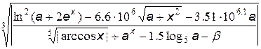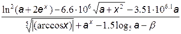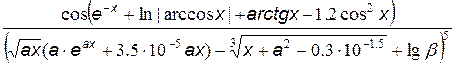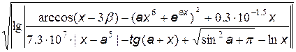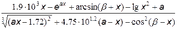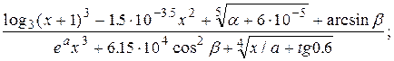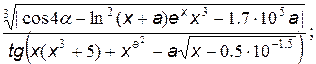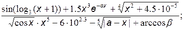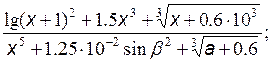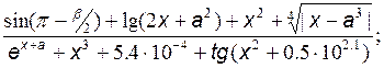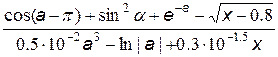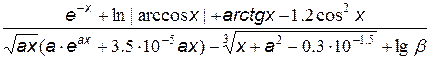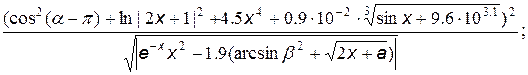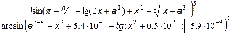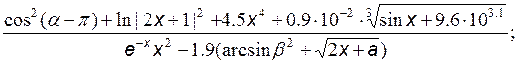 Программа расчета: program lab; CONST {исходные данные вводим как константы} x=3.5; z=1e-5; b=4; VAR ch,zn,y:real; {числитель, знаменатель дроби, результат } BEGIN ch:=exp(x)+exp(6*ln(z))-4.5E2*sqrt(x); {числитель для Y} zn:=exp(x*ln(z))+exp(3.5*ln(b)); {знаменатель} y:=ch/zn; {значение Y } WriteLn('Arithmetic expression: Y=',y:8:4);{вывод результатов на экран} END.