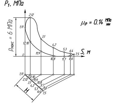 Рисунок 11 – Индикаторная диаграмма V-образного двигателя В стандартных единицах определяются движущие силы, действующие на поршни каждого из цилиндров РI и РII, из выражений: Для цилиндра I