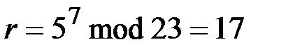 Злоумышленник должен определить закрытый ключ Особенностью криптосистемы Эль Гамаля является то, что объем передаваемой криптограммы в два раза превышает объем исходного сообщения. Это объясняется тем, что для вычисления криптограммы требуется выполнить операции (1.18) и (1.19). Следствием этого является большее, по сравнению с алгоритмом RSA, время шифрования и больший объем вычислений. Рассмотрим пример шифрования при помощи алгоритма Эль Гамаля. Пусть требуется передать исходный открытый текст Абонент