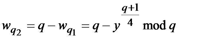 причем должно выполняться условие: Процедура расшифрования состоит в извлечении квадратного корня из криптограммы. Предварительно вычисляются корни из