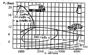 Рис. 3.35. Универсальные характеристики дизеля, оборудованного системой Comprex.