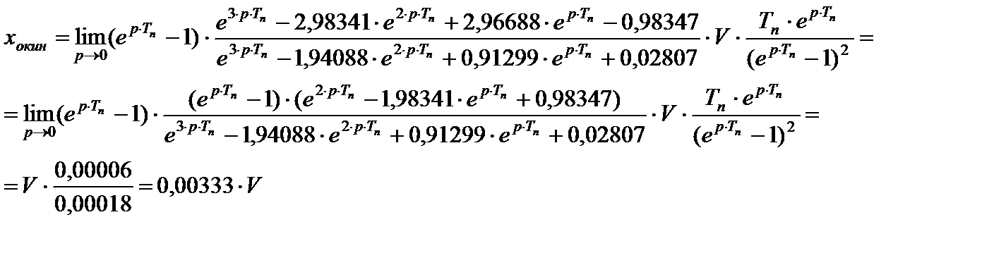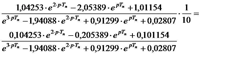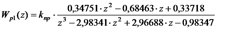 Переходной процесс на выходе замкнутой ИСАУ (xp(t)) Построим переходной процесс на выходе замкнутой импульсной САУ xp(t) при Для этого найдем дискретную передаточную функцию прямой цепи заданной системы, т.е.