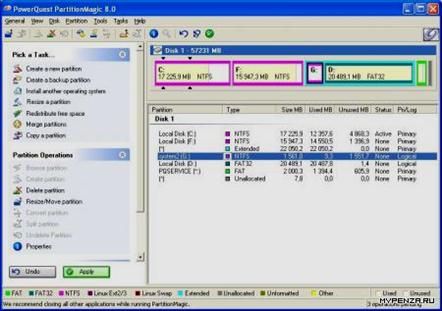 Профессиональный подход к работе организован с учетом навыков обычных пользователей. В программу Acronis Disk Director Suite 10 включены обновленные утилиты, ранее доступные только по отдельности. Менеджер разделов (Partition Expert) поможет скопировать, разделить, переместить разделы жестко диска без потери данных. Можно перенести свою ОС со всеми файлами на новый жесткий диск, если сломался старый. Это избавляет от необходимости заново переустанавливать ОС со всеми программами. Или можно просто разделить жесткий диск на разделы для удобства в работе. Редактор дисков выполняет специализированные операции по работе с жестким диском: от проверки до исправления ошибок. Утилита восстановления разделов (Recovery Expert) – профессиональный инструмент по возвращению к жизни и восстановлению утраченных или удаленных разделов. Может случиться так, что случайно удалится раздел жесткого диска или это произойдет в результате программной ошибки. Эта утилита может восстановить с высокой точностью данные, которые были удалены даже несколько месяцев назад. Еще одна полезная функция программы – создание загрузочного диска. Если вдруг Windows «приказала долго жить», а копию своих файлов мы так и не успели сделать, не стоит думать, что драгоценная информация утеряна навсегда. Воспользуемся загрузочным диском: он способен работать с жестким диском без загрузки ОС. Мы сможем полноценно работать с содержимым жесткого диска, переносить файлы, протестировать на наличие ошибок и попробовать устранить неполадку с загрузкой ОС. Только загрузочный диск нужно сделать заранее. Программа Power Quest Partition Magic 8.0 работает со всеми версиями Windows, понимает ФС FAT16, FAT32, NTFS, Linux Ext2/3. Она позволяет: 1) создание и удаление разделов на жестком диске, а также изменение размеров этих разделов без потери данных; 2) слияние разделов без потери данных; 3) преобразование ФС FAT32 в FAT16 и NTFS, а также NTFS в FAT32; 4) изменение размеров кластера для уменьшения потерь дискового пространства; 5) после изменения буквы имени диска встроенная утилита DriveMapper проверит пути к программам, и при необходимости внесет изменения в реестр, а также сделает соответствующие исправления в системных ярлыках; 6) проверка жестких дисков на наличие bad-секторов; 7) работа с разделами до 160 Гб.
