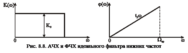 Идеальный фильтр низких частот ФНЧ – используется как идеализированная модель реальных фильтров. Комплексный коэффициент передачи идеального ФНЧ описывается функцией вида