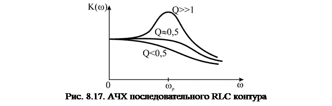 где АЧХ контура при нескольких значениях добротности показаны на рис. 8.17 При низких добротностях АЧХ приближается к характеристике интегрирующей цепочки, а при
