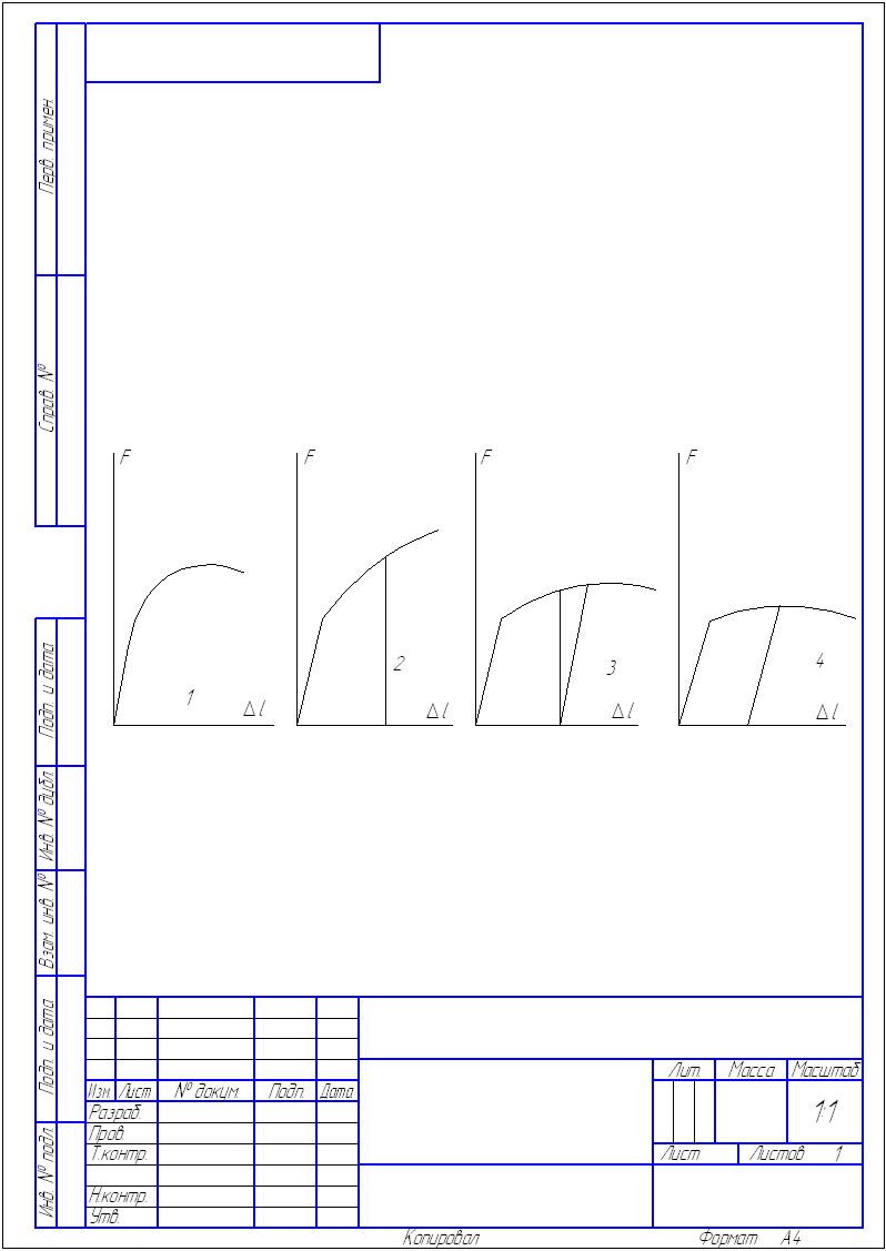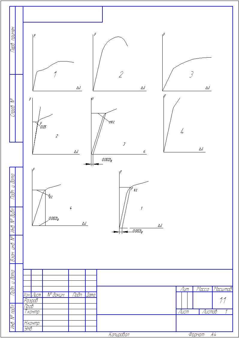 1. Замерить диаметр образца d 0. 2. Штангенциркулем отложить на рабочей части образца расчетную длину L 0 и поставить две метки. 3. Установить образец в захваты машины и настроить диаграммный аппарат. 4. Провести испытание образца до разрыва. Примечание. При испытании одного из образцов с целью наблюдения явления наклепа рекомендуется разгрузить образец с какой-либо нагрузки за пределом текучести, а затем провести новое нагружение до разрушения. 5. Обработать полученную диаграмму растяжения: а) найти начало диаграммы. В начальной стадии растяжения образца происходит обжатие его головок в захватах машины и выборка зазоров. Поэтому соответствующая часть диаграммы может быть криволинейной (рис. 2.3). Для исключения начального нелинейного участка необходимо продолжить прямую пропорциональной зависимости до пересечения с осью ∆L (точка 0); б) отметить на диаграмме ее характерные точки П, В, С, Д и измерить их ординаты (см. рис. 2.3).